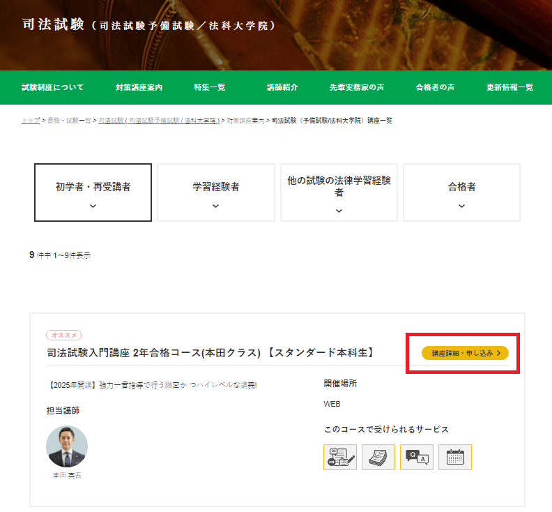 講座一覧から、講座名称横の「講座詳細・申し込み >」をクリックしてください。