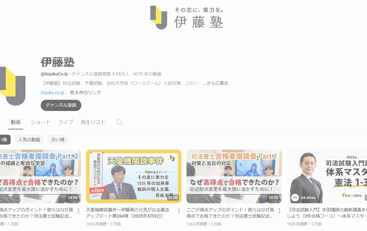 手軽に見れるYouTubeの伊藤塾のチャンネル。