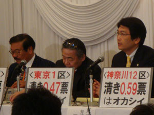 ※東京高裁では、別グループの裁判で同じ東京1区(0.5票)の選挙に対して、「違憲状態」という判決も出ている。 |