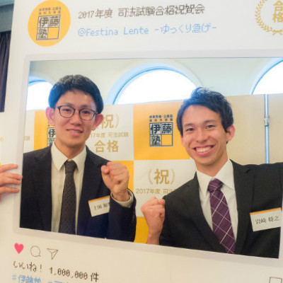 山本悠揮講師がいつでも質問に答えてくださったり、受験生同士質問しあったり学習するには最適の環境でした。伊藤塾に来ることで勉強の方法論を教えてもらうことができたことが一番大きかったと思います。(上田さん)