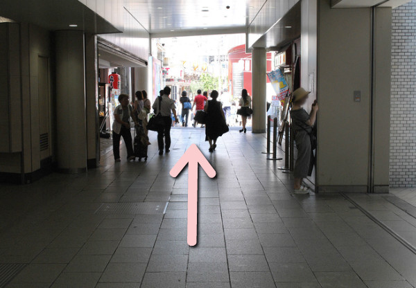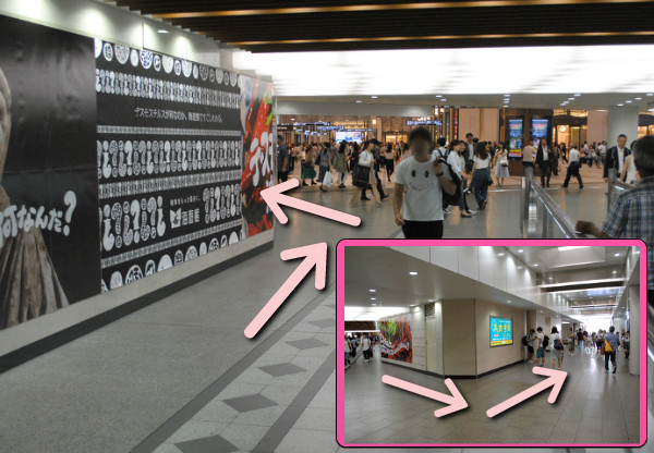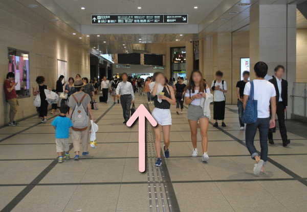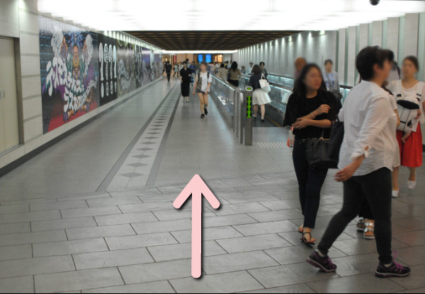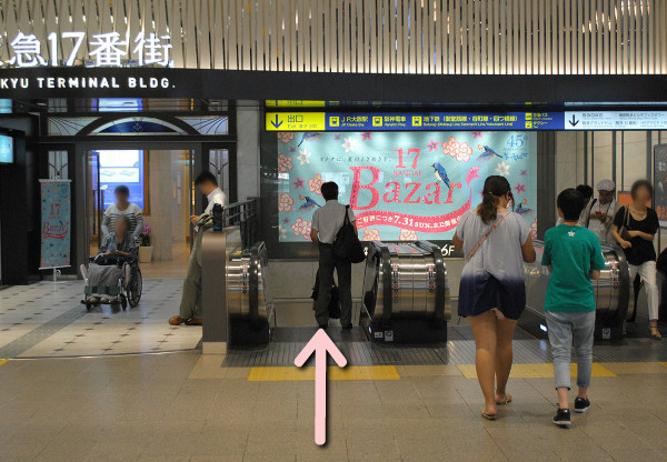 エスカレータを降りたら、そのまままっすぐ阪急百貨店方面へ通路を進みます。