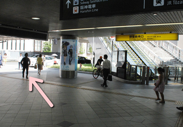 JR大阪駅、御堂筋南口から出て左(阪急百貨店方面)へ。