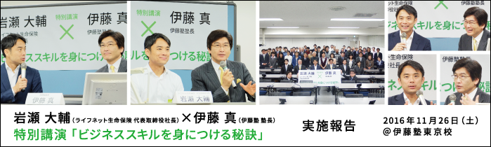 伊藤 真塾長とライフネット生命保険代表取締役社長の岩瀬大輔氏との対談