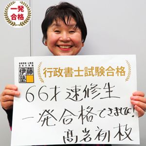 伊藤塾の講師先生方を信頼し、最後まで諦めなければ、66歳、初学者、7か月の受験勉強でも一回合格を果たせます。