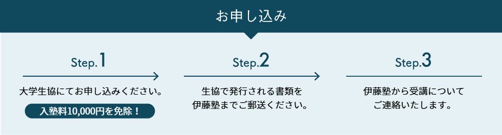 同志社生協からお申込いただくと、入塾料10,000円免除!