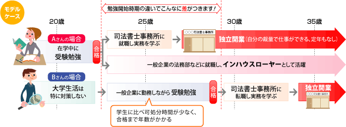 そして、司法書士試験合格後は司法書士として事務所に勤務するもよし、一般企業に就職するもよし、その後独立開業するもよしです。
