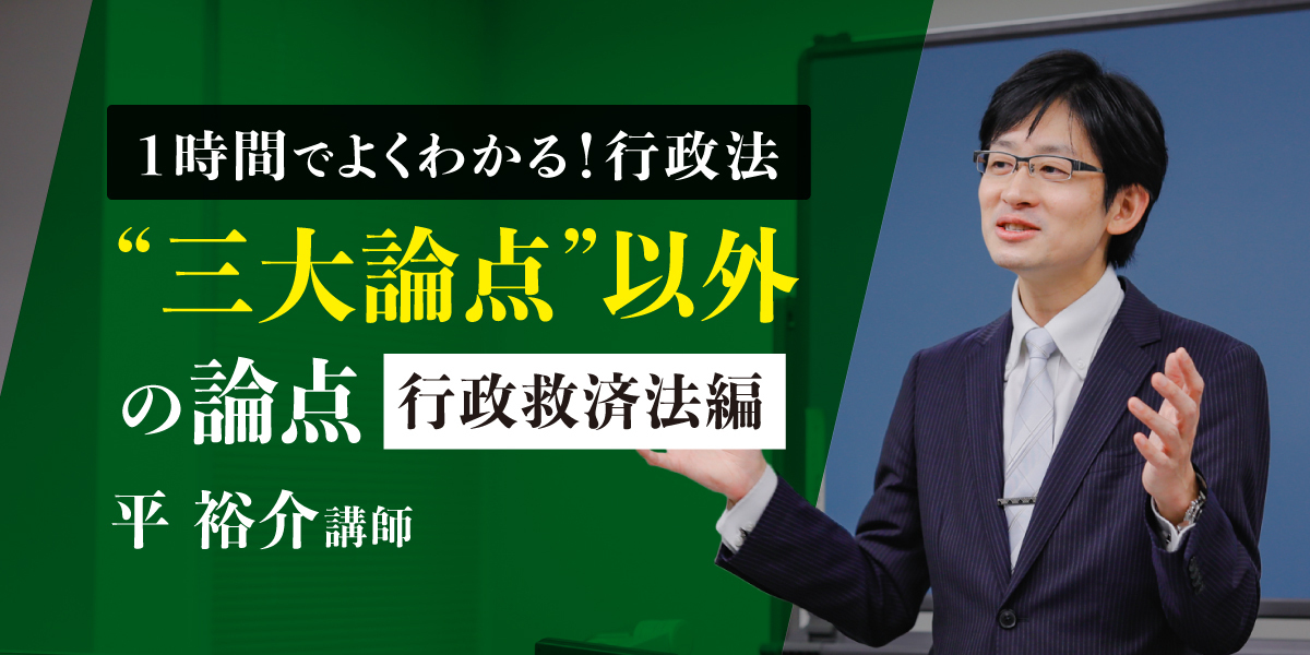 1時間でぎゅっとまとめていきます。この講義を活用し、行政救済法の分野で、処分性・原告適格以外の重要論点(取消訴訟の狭義の訴えの利益・取消訴訟以外の抗告訴訟の訴訟要件・実質的当事者訴訟の確認の利益等の重要論点)のポイントをおさえてしまいましょう。
