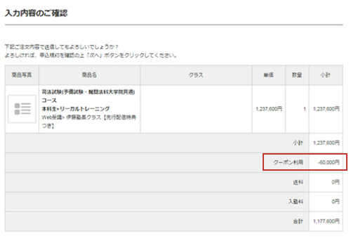 複数講座のお申し込みで複数のクーポンのご利用可能な場合には、講座ごとにお手続きをお願いします。