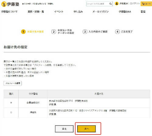マイページにログインしている場合は、お届け先の指定(住所)が表示されます。