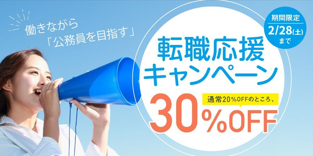 働きながら公務員への転職を目指す皆さんへ、 少しでも費用負担を軽く 、受講料の常設割引制度をご用意しました。