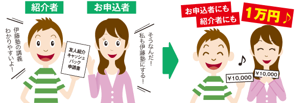 その場合にはぜひお得な「伊藤塾 友人紹介制度」をご利用ください。