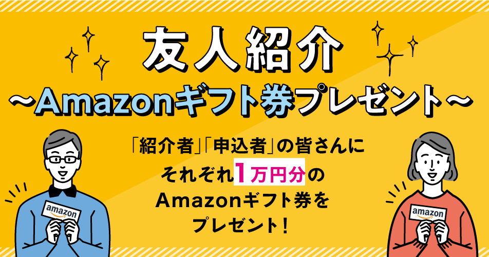 「紹介者」「申込者」の皆さんにそれぞれ最大1万円分のAmazonギフト券をプレゼント!