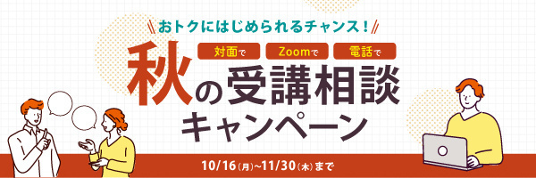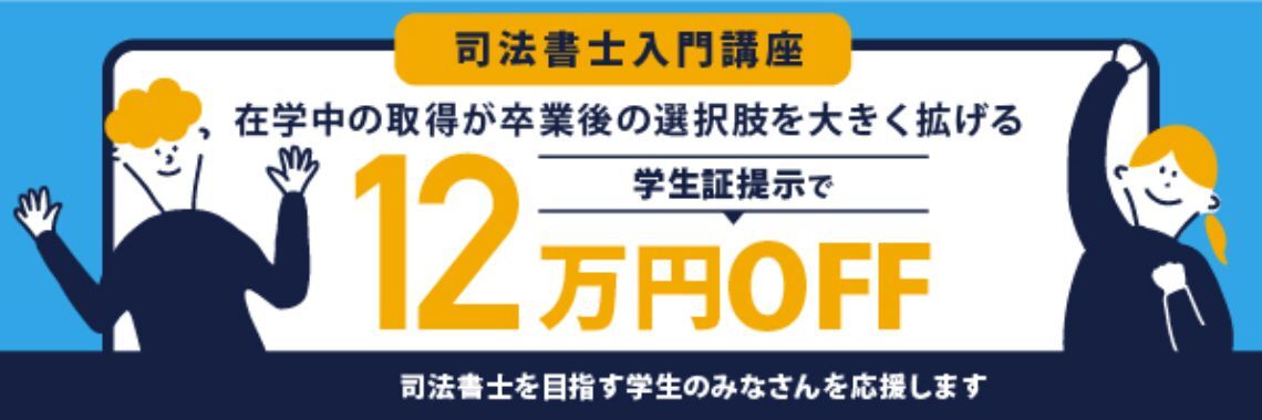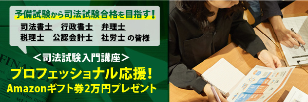 キャンペーン・受講料サポート一覧 試験科共通 再受講割引制度 「伊藤塾でもう一度学習し直し、合格を目指したい!」 過去に伊藤塾で講座を受講されたことのある方は、一般受講料から割引いたします。<最大40%OFF> 詳しく見る 友人紹介~Amazonギフト券プレゼント~ ご友人を紹介していただくと、「紹介者」「申込者」それぞれに最大1万円分(期間限定)のAmazonギフト券をプレゼント!まだ塾生でない方同士でのお申し込みの場合にもご利用可能です。 詳しく見る