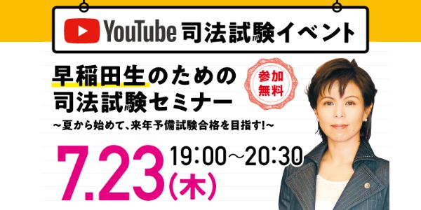 「【早稲田生対象】 夏から始めて、来年予備試験合格を目指す!」