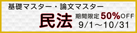 <「基礎マスター民法」「論文マスター民法」9/1(火)~10/31(土)まで 期間限定 50%OFF!>