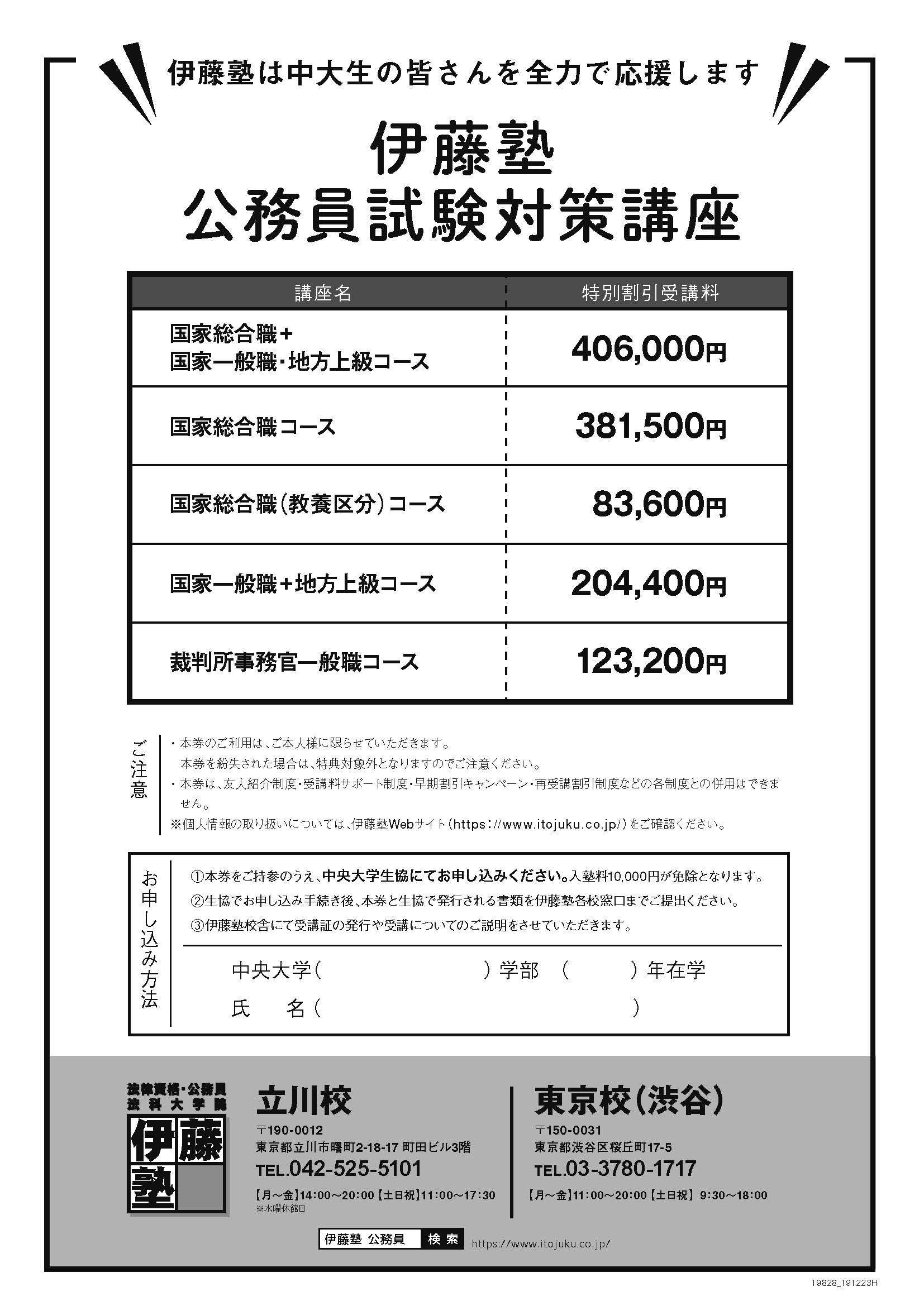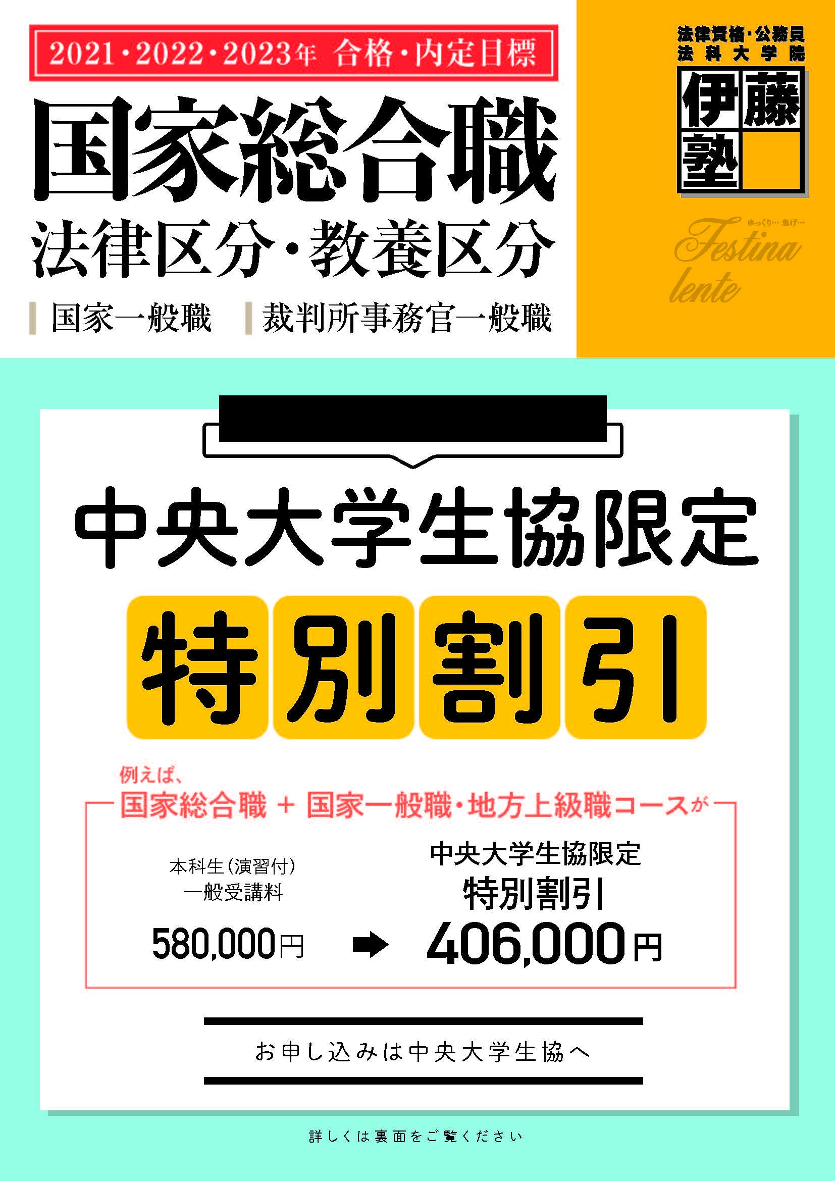 中央大学生協でのお申込みに限り、伊藤塾の公務員講座を特別価格で受講できます!