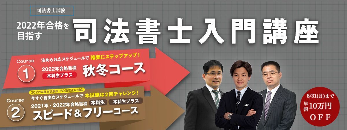 トップ > イベント > YouTubeライブ配信 > <8/2(日)15:00~>【司法書士】2022年合格を目指すあなたに最適なコースは? 新たにリリースした「入門講座」2つのコースのカリキュラムと特長