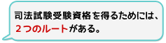 司法試験は、①法科大学院修了者、もしくは②司法試験予備試験(以下、予備試験)合格者に受験資格が与えられます。そのため、まずは法科大学院入試、または予備試験に合格する必要があります。