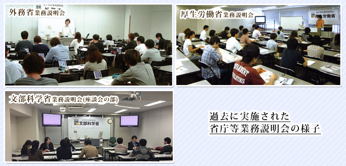 省庁別業務説明会は要予約です。日程一覧でご案内する「予約方法」に従ってご予約ください。