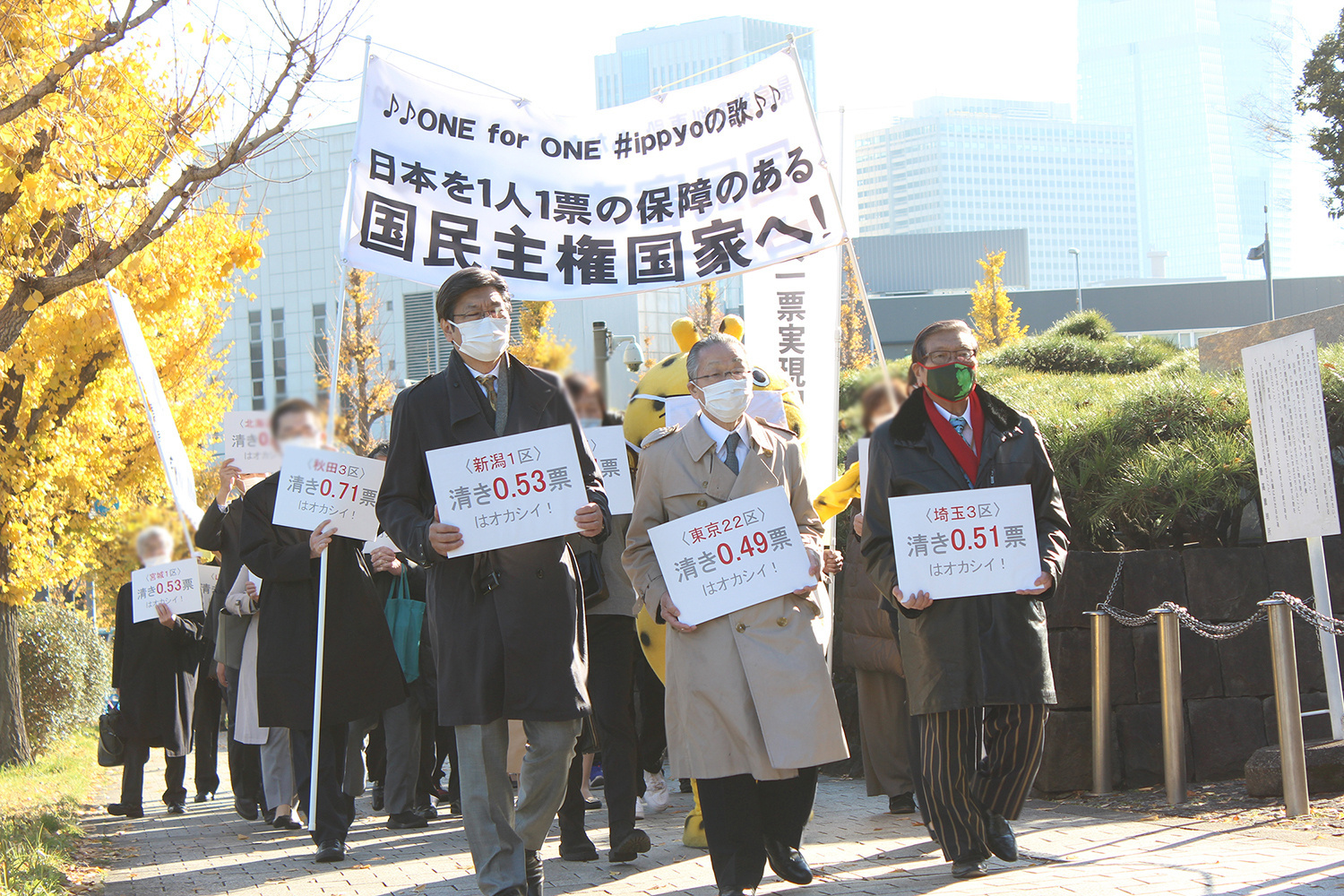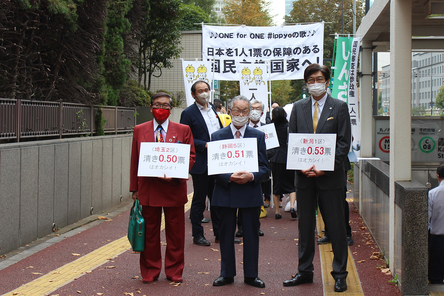 10月31日衆院選の翌日11月1日、全国8高裁6支部で、全国289小選挙区分の選挙無効訴訟の一斉提訴が行われました。有権者であれば誰しも持つ一票ですが、その価値は住所地によって異なり、差別されているのが現状です。こうした「一票の不平等」をなくし、憲法は民主主義の大原則である一人一票を求めているとして、国政選挙ごとに提起されているのが、この選挙無効訴訟です。