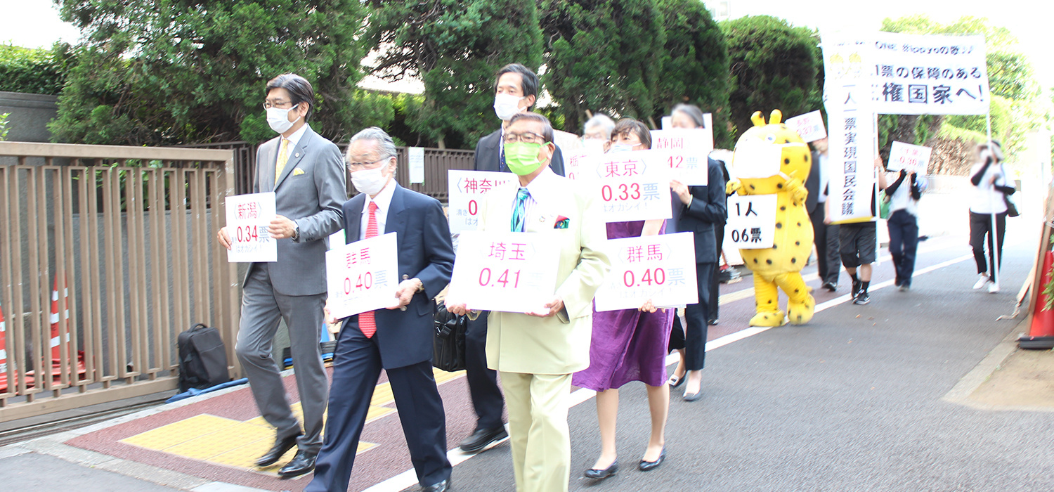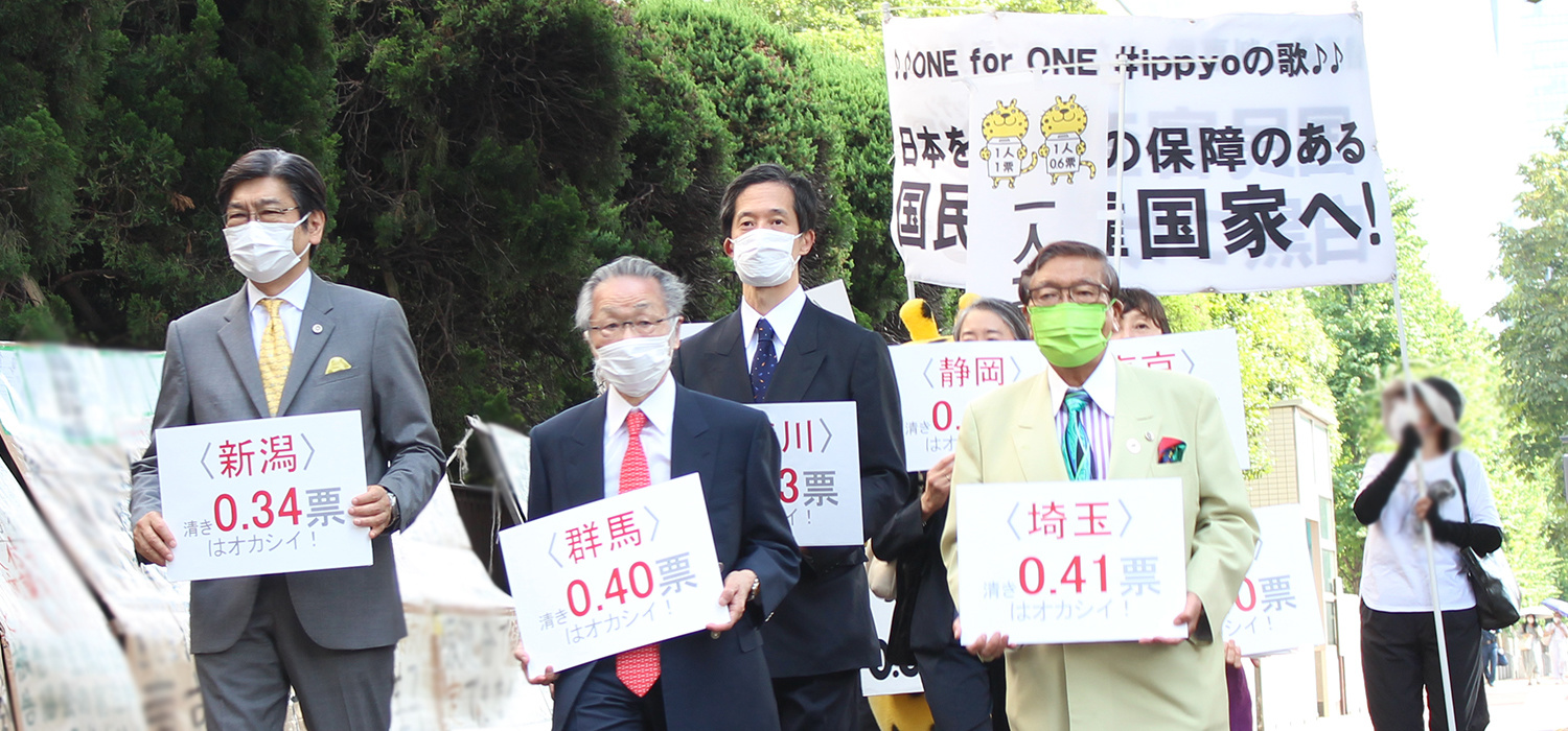 2022年7月10日参院選の翌日7月11日、全国8高裁6支部で、全国45選挙区分の選挙無効訴訟の一斉提訴が行われました。有権者であれば誰しも持つ一票ですが、その価値は住所地によって異なり、差別されているのが現状です。こうした「一票の不平等」をなくし、憲法は民主主義の大原則である一人一票を求めているとして、国政選挙ごとに提起されているのが、この選挙無効訴訟です。