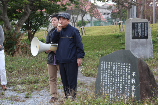 一連の見学には、村民の戦争体験をまとめた「読谷村史」の編集に携わった小橋川清弘さんに同行して