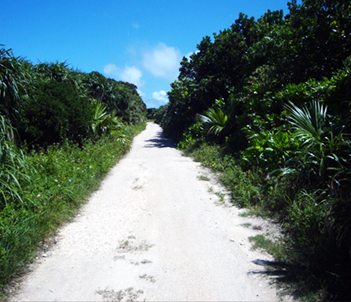 久高島の先端カベール岬から南に向かって降りてくると、細く舗装された小道になります。これがロマンスロードと呼ばれている整備された遊歩道です。海風が、ロマンスロードを吹きぬけます。久高島の海風を感じながら、ゆっくりと歩いてみるのも良い体験になります。