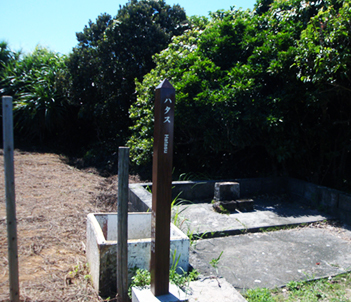イシキ浜に漂着した五穀の種子の中から麦を撒き、壺を埋めたとされる場所で、島の中央附近、畑の一角にあります。この場所から五穀が広がったと伝えられています。