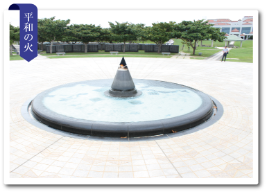 平和の広場の中央には「平和の火」が灯されている。この「平和の火」は、沖縄戦最初の上陸地である座間味村阿嘉島において採取した火と被爆地広島市の「平和の灯」及び長崎市の「誓いの火」から分けていただいた火を合火し、1991年から灯しつづけた火を、1995年6月23日の「慰霊の日」にここに移し、灯したものである。