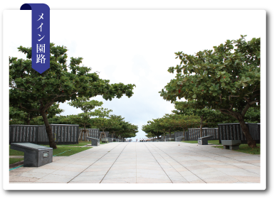 メイン園路は、その中心線が6月23日の「慰霊の日」における日の出の方位に合わせて設定されている。