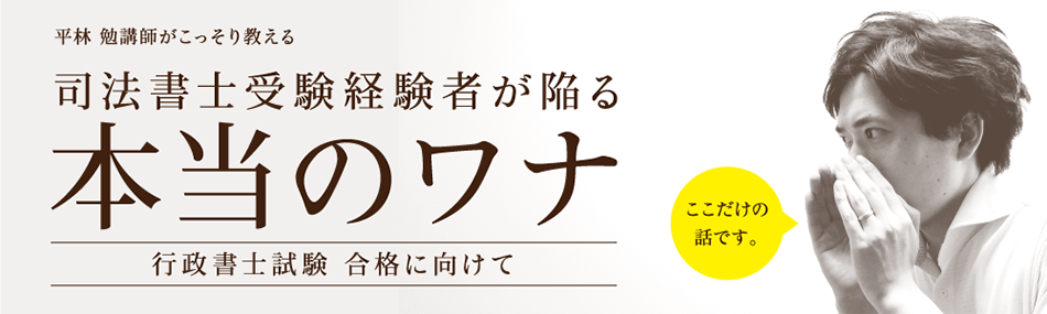 司法書士試験にも行政書士試験にも造詣の深い平林勉講師が、司法書士試験受験経験者が行政書士試験の合格に臨むにあたり、「なぜか?世間には出てこない本当に注意すべきこと」について、お伝えするコーナーです。