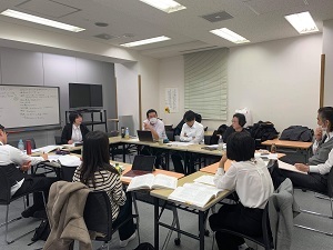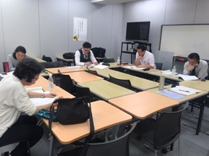第6回目は、第20条~20条の2、21条~22条の3の読み込みを行いました。変更・永住・取得申請をメインテーマに、いつも通り継続メンバー1名と新規メンバー1名による丁寧な読み込み・解説があり、企画班のメンバーから具体例を交えての補足説明もされました。日中に行われた国際部研修会の内容も踏まえて、参加メンバー各々から様々な情報提供や意見交換が行われました。開始前や休み時間にも話すのは業務に関することばかりで、教室にいる時間がとても有意義なものとなっています。 そのままの流れで企画班より次回のロールプレイングについての説明もあり、次回は今までとは違う内容になりそうです。