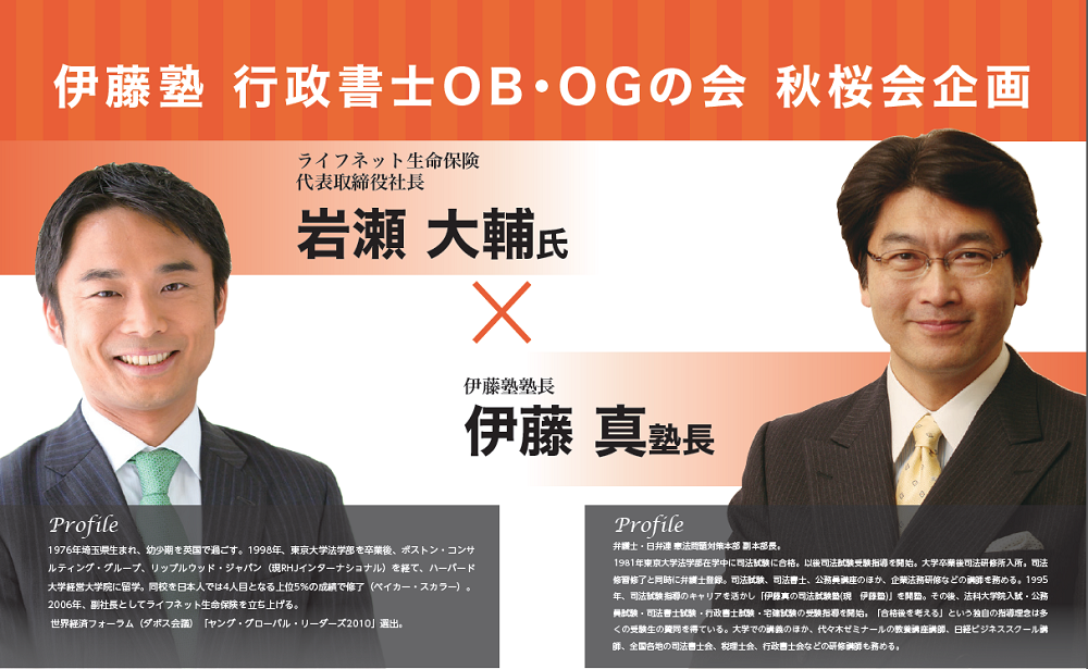 伊藤塾 行政書士OB・OGの会 秋桜会企画 岩瀬大輔×伊藤真特別講演 「ビジネススキルを身につける秘訣」 動画視聴サイト