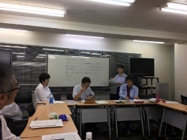 その後に各グループに分かれての打合わせを行いました。 ここでも早速、予定の時間を過ぎても活発な議論が行われていました。教室内が更にヒートアップしました。