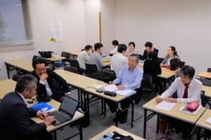はじめに、野村政史先生より、芦部信喜著『憲法』に基づく「憲法総論」の講義、続いて2012年に発表された「自民党憲法改正草案」の特徴について、現行憲法との比較表を用いた解説が行われました。参加者は熱心に耳を傾け、活発な質疑応答も行われました。