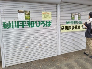 とおっしゃっていました。 当時の拡張予定地は、防衛施設庁から財務省管轄になったが、いまだ空き地(雑木林・荒地)となったまま。周辺に宅地の少ないこの自衛隊基地に、今後オスプレイが配備されるのではないか、と危惧していた。 福島さんのお父様である反対派の代表、宮岡氏は江戸時代から続く「普通」の農家だったという。福島さんが幼少のときはその姿を見てきたが、この米軍基地拡張の計画を聞いた次の日に、宮岡氏は「六法」を買ってきたという(平和ひろばに資料あり)。そしてボロボロになるまで、読み込んでいたという。 映画フィルム内の闘争の様子では、「非暴力」「不服従」の闘いを徹底するために、反対派の地元農民や学生や支援者が、互いに腕を取り合って、武装警察隊の測量の行く手を阻止しているのが印象的でした(しかし衝突はあり、1200名ほどの負傷者を出す)。 そして、近年、安倍政権では、あの「安保法制」の集団的自衛権の合憲性を、この「砂川事件」の最高裁判決を根拠にしている。しかし、上記のとおり、最高裁の判決では「自衛権は認めるが、日米安保条約については高度な政治性により、司法の判断はできない」としているだけである。しかも、明らかに日米の政府の圧力がかかった裁判であった。ムリがありすぎる。 福島さんは、ただ平和を願って、また、この地を住民のための有意義な場所にしたい、という思いであふれていました。昔も今も、遠い沖縄の基地問題までも、気にされていました。また、このような闘争で一番ストレスになるのは、地元住民が賛成派・反対派で分断されること、とおっしゃっていました。いまでも、その名残はあるという。 福島さんの闘いは、まだ続くのかもしれません。(オスプレイ配備など) 広く、この砂川での闘争の本当の意味が、伝われば良いと思いました。