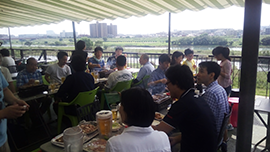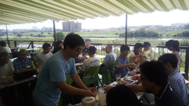 ここ暫く長雨に祟られていましたが、この日は久しぶりの晴天に恵まれ、青空の下で多摩川の流れを眺めながら、バーベキューを楽しむことができました。
