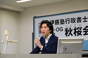 昨年から始まった特定行政書士の業務から視た、改正行政不服審査法について宅建業の依頼者とのやりとりを通じてお話されました。