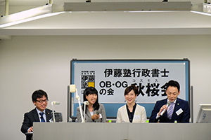 第3部では、「実務家3人が語る!行政書士のリアルな話」と題し、小野麻衣子先生、岩﨑直美先生、藤原和重先生の3人の実務家をお招きして、開業するまでの話や開業してから現在に至るまでのお話を赤裸々にお話して頂きました。