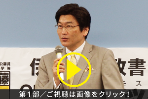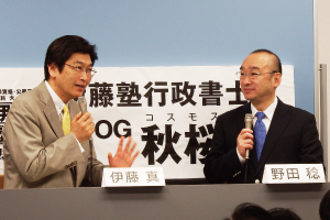 第2部では組織論、経営戦略論、マネージメントをご専門に活躍される経営学者である野田稔先生をお迎えして、60分にわたり伊藤塾長の対談を行いました。 社会人としてキャリアを形成するための取り組み方や、行政書士という資格を活かして活躍するための考え方などを、お二方の経験を元にお話しいただきまし た。野田先生が独自に語る「キャリア形成」についてのお話や、「キャリアは偶然から始まる」「楽観は意思、悲観は気分」という考え方に刺激を受けたという 参加者も多く、これから行政書士として、行政書士有資格者としてキャリアを積んでいくにあたっての考え方を見直すきっかけになったとの声も多く寄せられま した。