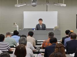 の講義時間を短くし、行政書士事務所作りの基礎の講義時間を多く確保しました。講義終了後、質疑応答の時間を20分程設けました。参加者から、行政書士の守秘義務について、紹介料の授受、相続手続等の質問があり、講師3名で回答をしました。