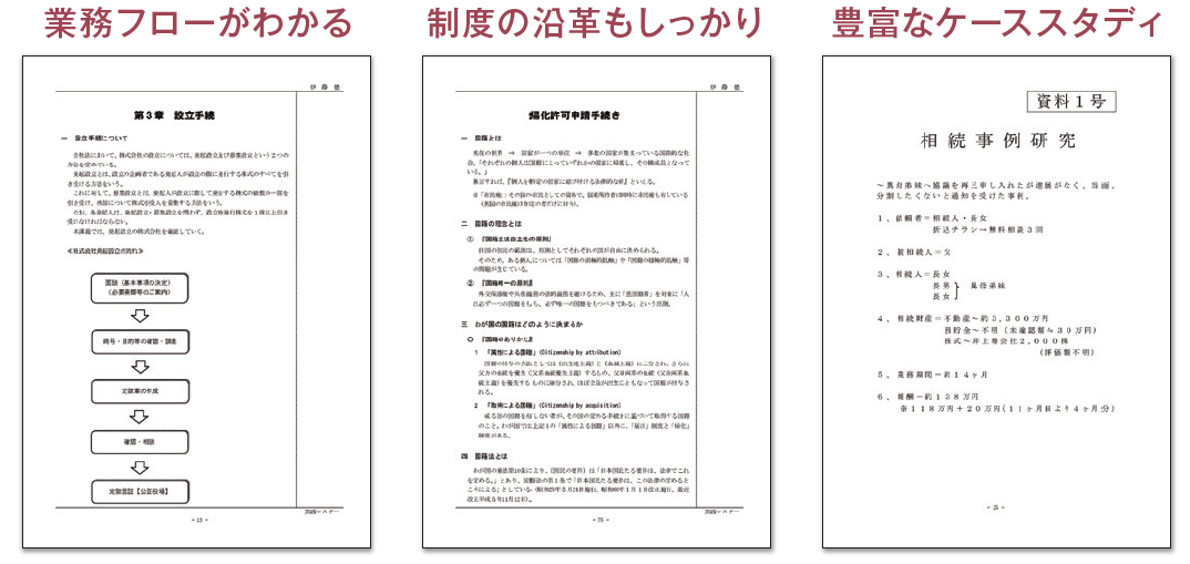 基本的な法令以外は、このオリジナル教材に掲載します。主要な行政書士実務に関する基礎知識やスキルを身につけたい方に、最適な教材です。