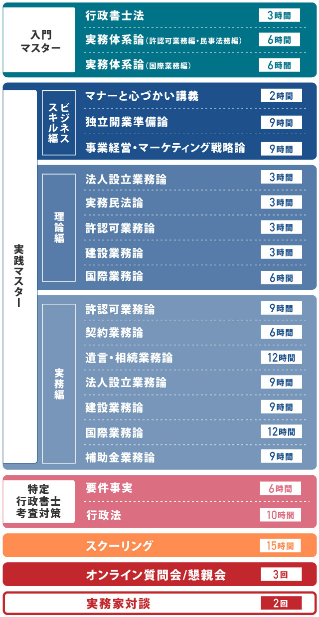 伊藤塾「行政書士実務講座」では、約1年間じっくりと時間をかけて、行政書士実務に必要となる基礎知識から、最新の情報や技能、対応力までを幅広く、実践的に学んでいきます。