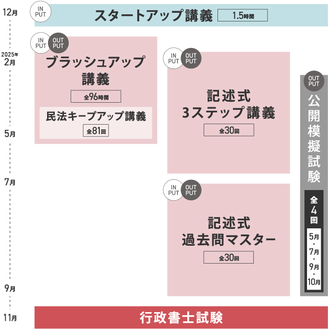 すぐに全科目を受講できるため、「記述式3ステップ講義」が始まるまでの期間での受講や、「記述式3ステップ講義」と同時並行でもご受講が可能です。