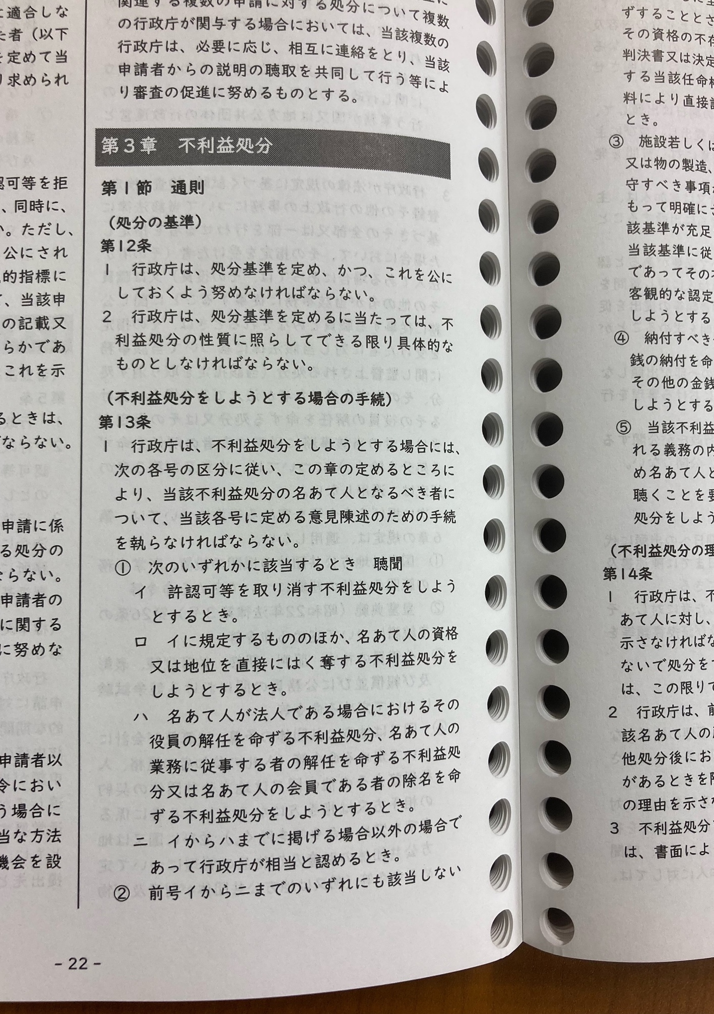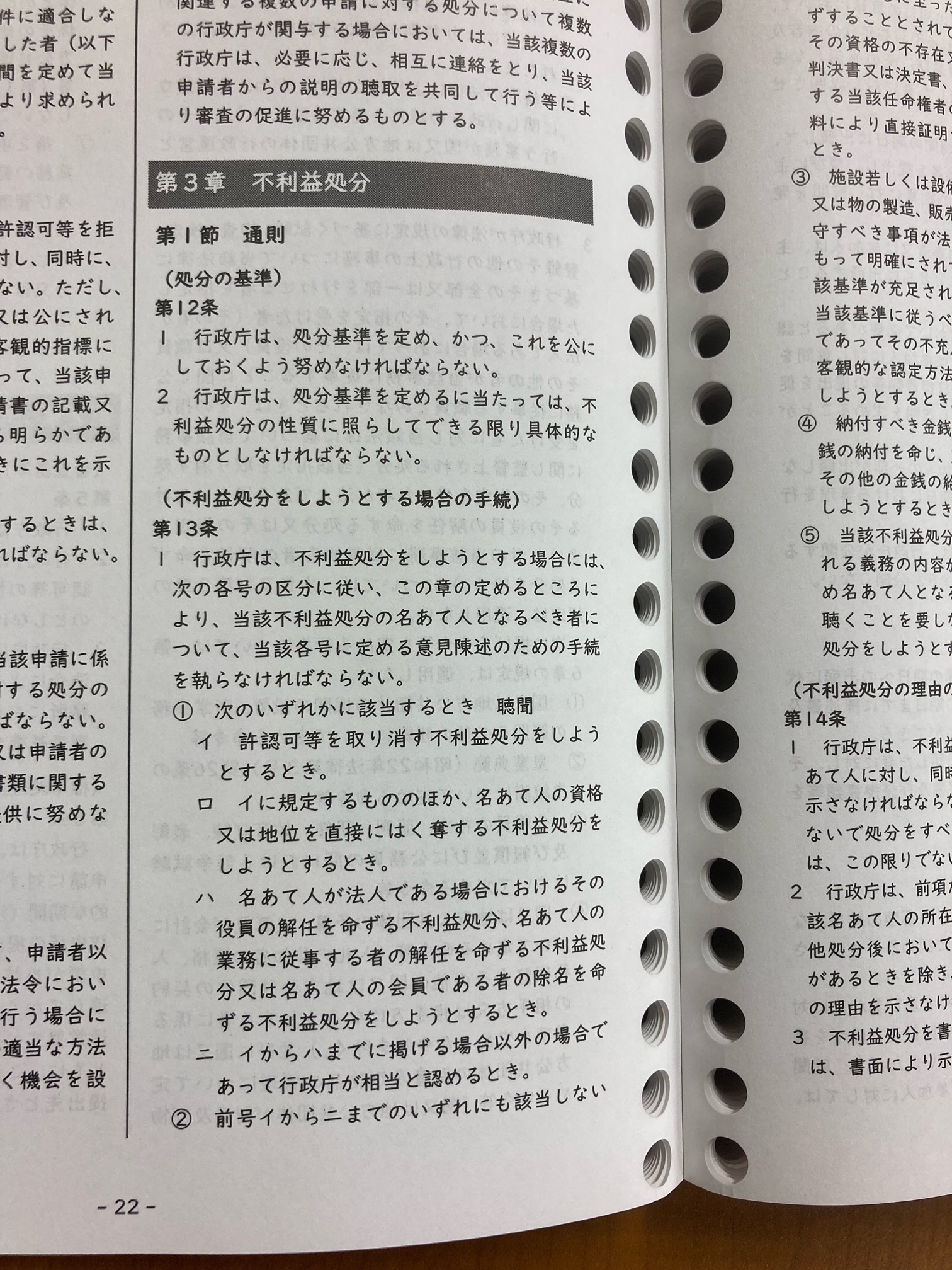 本書は22穴のA5サイズの作りになっているため、現在自分がメインとして学習する法令だけを切り離し、外出時もコンパクトに持ち運ぶことが可能です。