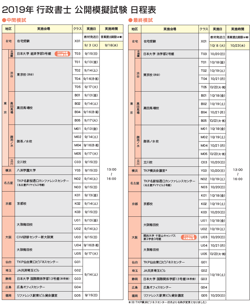 *最終模試 横浜地区 TKP横浜ビジネスセンターが「TKP横浜会議室」に名称変更がありました。