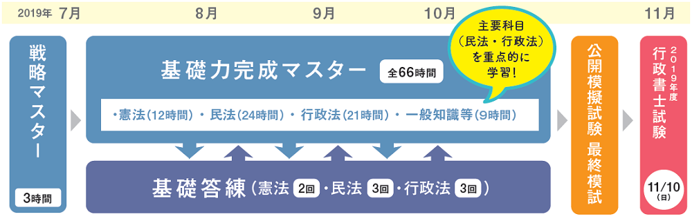 行政書士 短期集中講座とは、いまから行政書士試験に合格する力(知識・技術等)を得るために「これだけやればよい!」を提供する講座です。