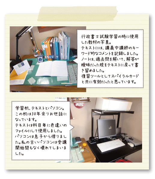 定年後も嘱託職員として継続勤務していましたが単純な毎日で気が滅入っていた中、家族からの応援も得て受験勉強に取り組む事ができ、大変良かったと思っています。