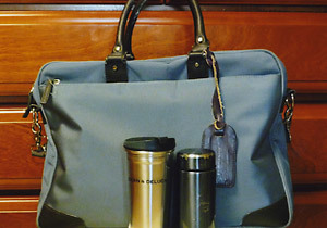 東京校への通学時のかばん(通勤用でもあります)と毎回妻が用意してくれた2本のマイボトルです(1本は日本茶、1本はコーヒー)。