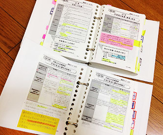 書き込み、付箋を貼りつけるなど、自分の見やすいようにカスタマイズした整理カード。